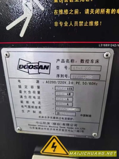 斗山235刀塔机!同款6台,8寸卡盘,线规,12工位刀塔,发那科TD系统,行程X350.Z520. 11kw伺服主电机,MT5液压尾座,链式侧排屑,军工厂使用 状态良好 信息编号:S066861 |